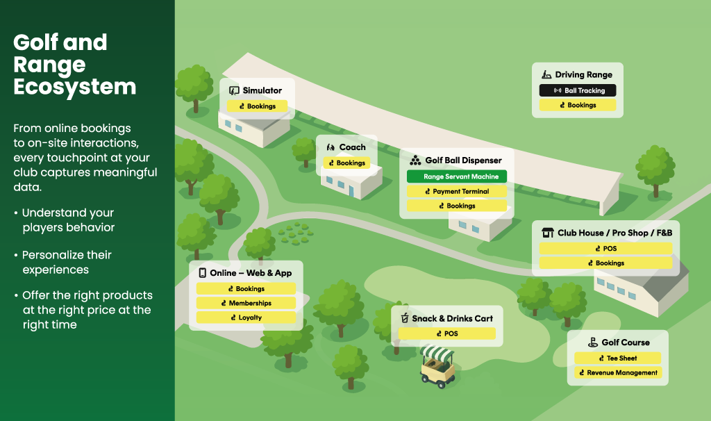 - Modular ecosystem – Seamlessly integrates with simulators, POS, golf club systems and academy software
